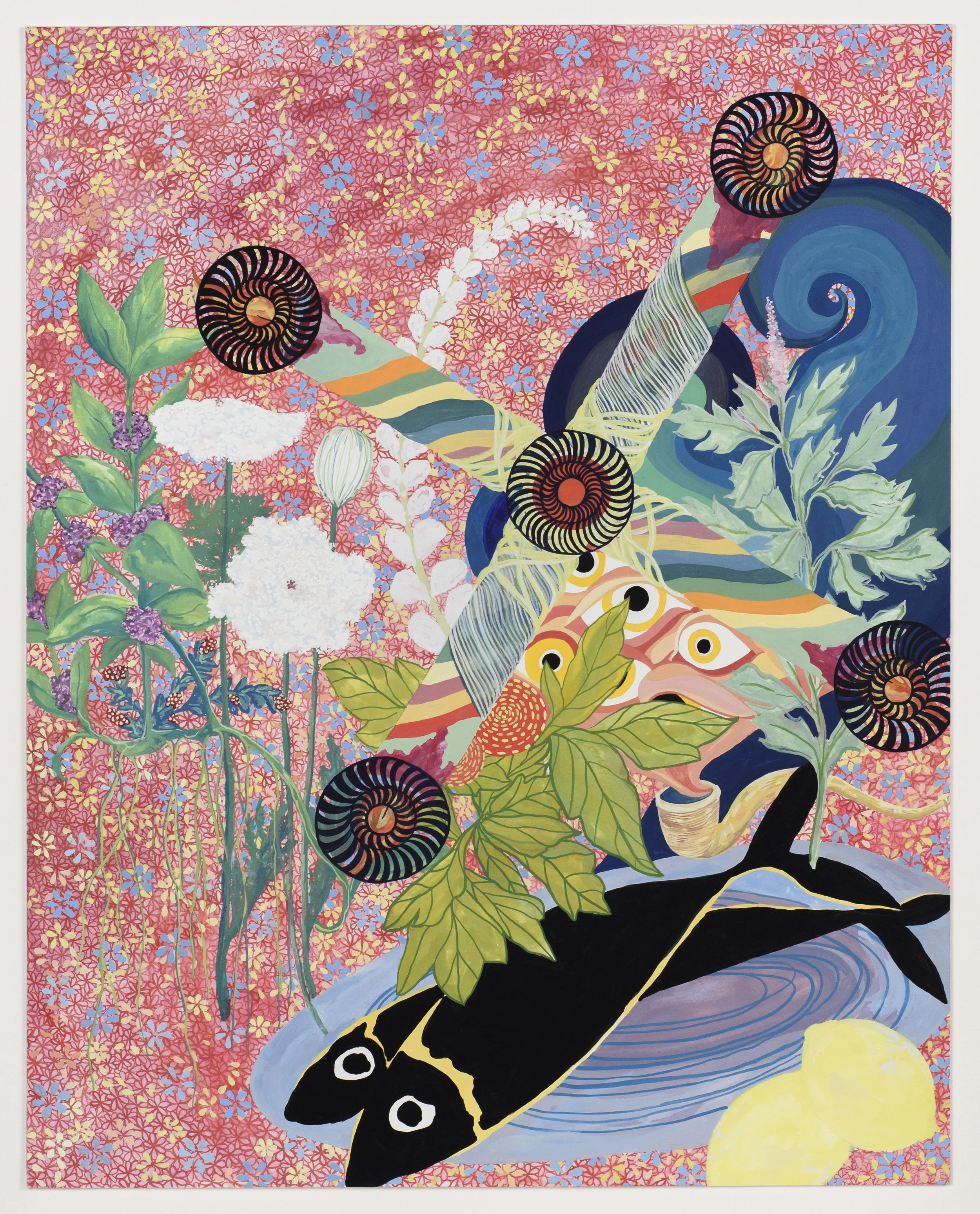 A charm to chase away... A charm to bring close, Gouache on Arches paper board, 20 x 16 inches, 2019